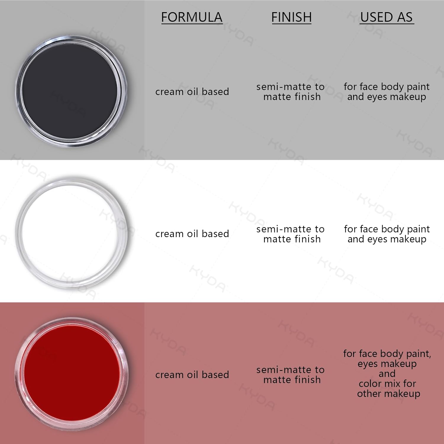 KYDA Black White Red Face Paint for Halloween Makeup, Face Body Painting Kit with Brushes for Clown Vampire Skull SFX Makeup, Costume Cosplay Party Theater Stage, Colored Eye Black for Spot Game