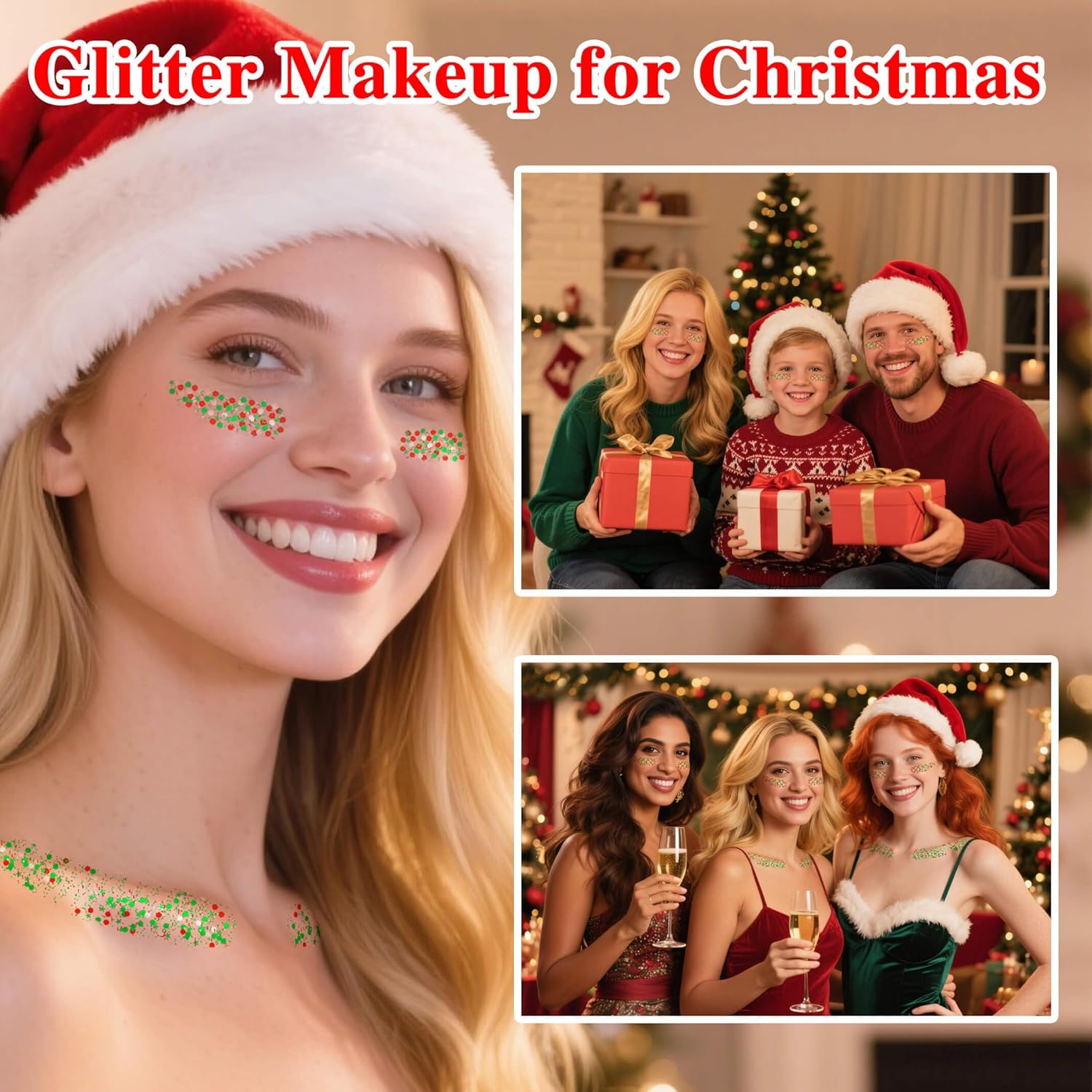 Christmas Hair Glitter Stick,Green Red Face Body Glitter for Kids,Waterproof Christmas Outfits for Women, Stocking Stuffers Sparkling Festival Party Gift for Women Girls,Chunky Glitter Makeup