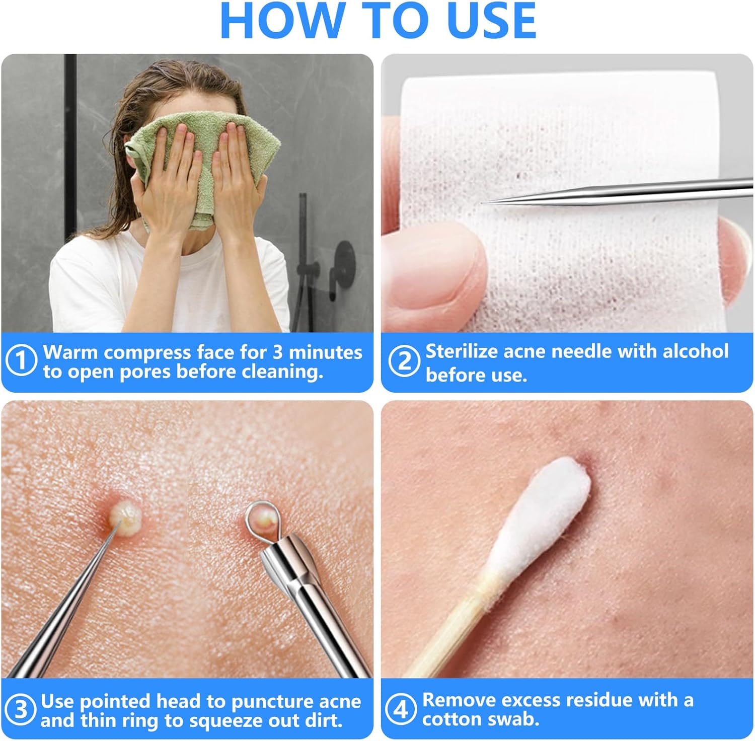 - 【Precise and Controlled】: Each needle features dual heads for precise and controlled extraction of blackheads, acne, and other blemishes. Our tools are designed to make the process easy and effective.