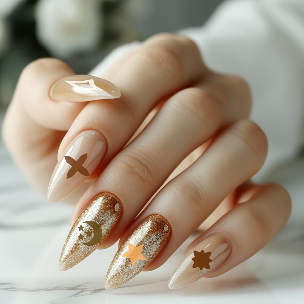 - Multiple Patterns: It features a variety of dreamy elements such as stars, moons, lightning, and geometric shapes, as well as classic textures of different styles, which can meet the creative needs of various nail art styles such as starry sky style and geometric minimalist style
