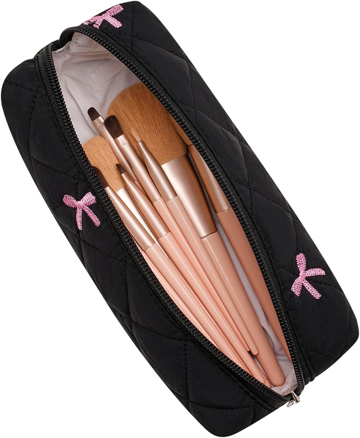 - ๐ Large Capacity and Fashion Design Style โ These HHQQWZ Brush Cosmetic Bag close size is: 210mm(8.27in) x 110mm(4.33in) x 70mm(2.76in), stylish and durable lining design easy to fit full-size brushes, cosmetics, makeup tools, lipstick, eye shadow, foundation and makeup sponge, etc. This bag is perfect for carrying your cosmetics.