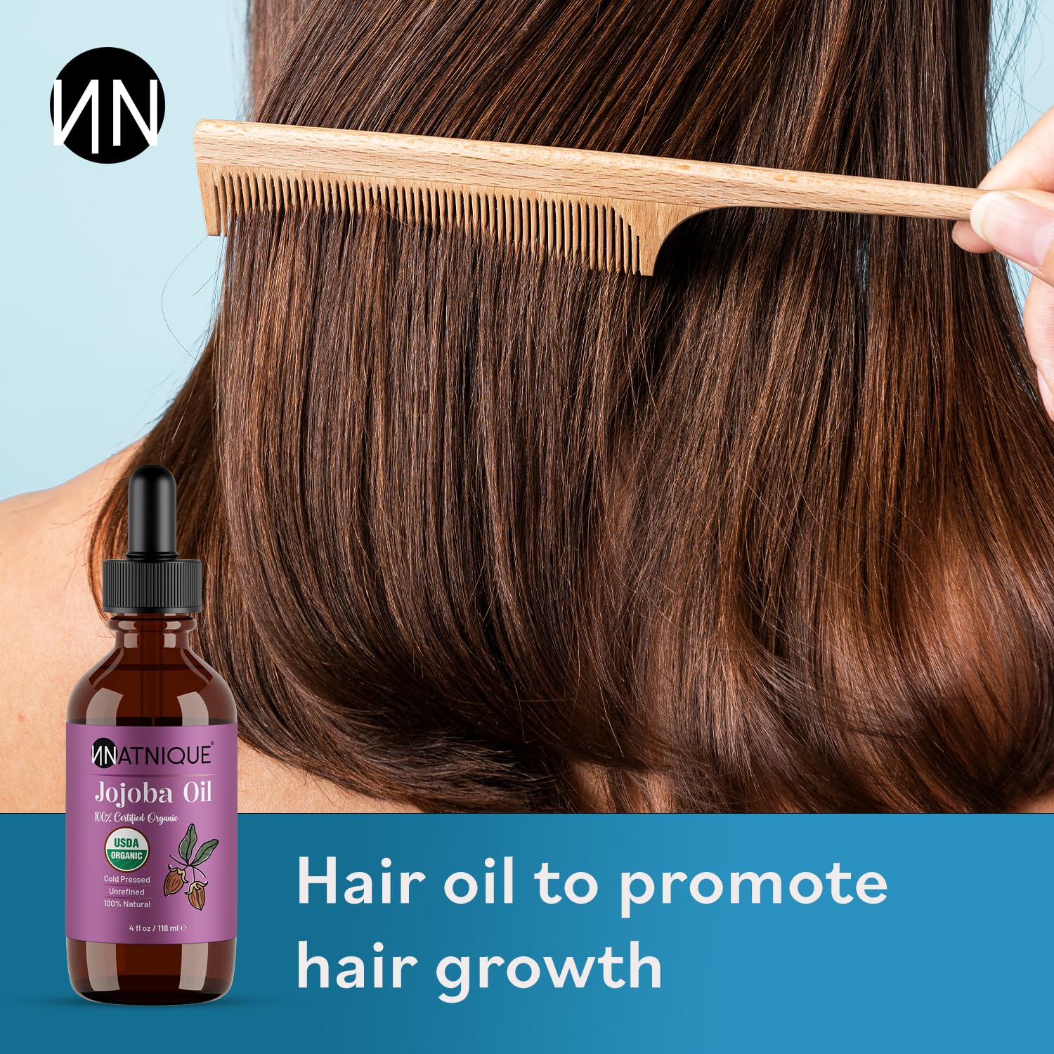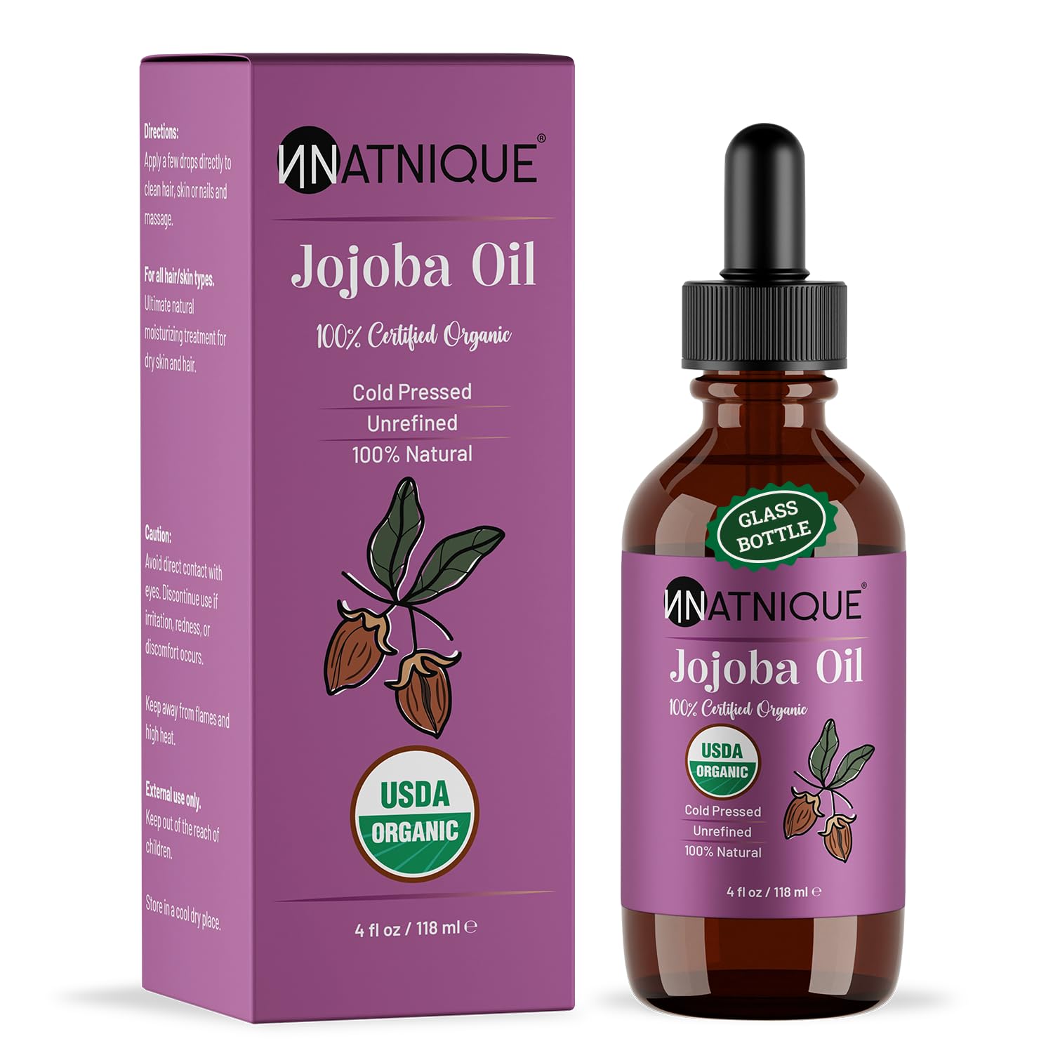 Natnique Organic Jojoba 4oz – USDA Certified, Cold Pressed, Unrefined & Hexane-Free – Pure Moisturizer for Hair Growth, Face, Skin, Beard, Scalp, Nails & Cuticles – Natural Facial, Body & Massage Care
