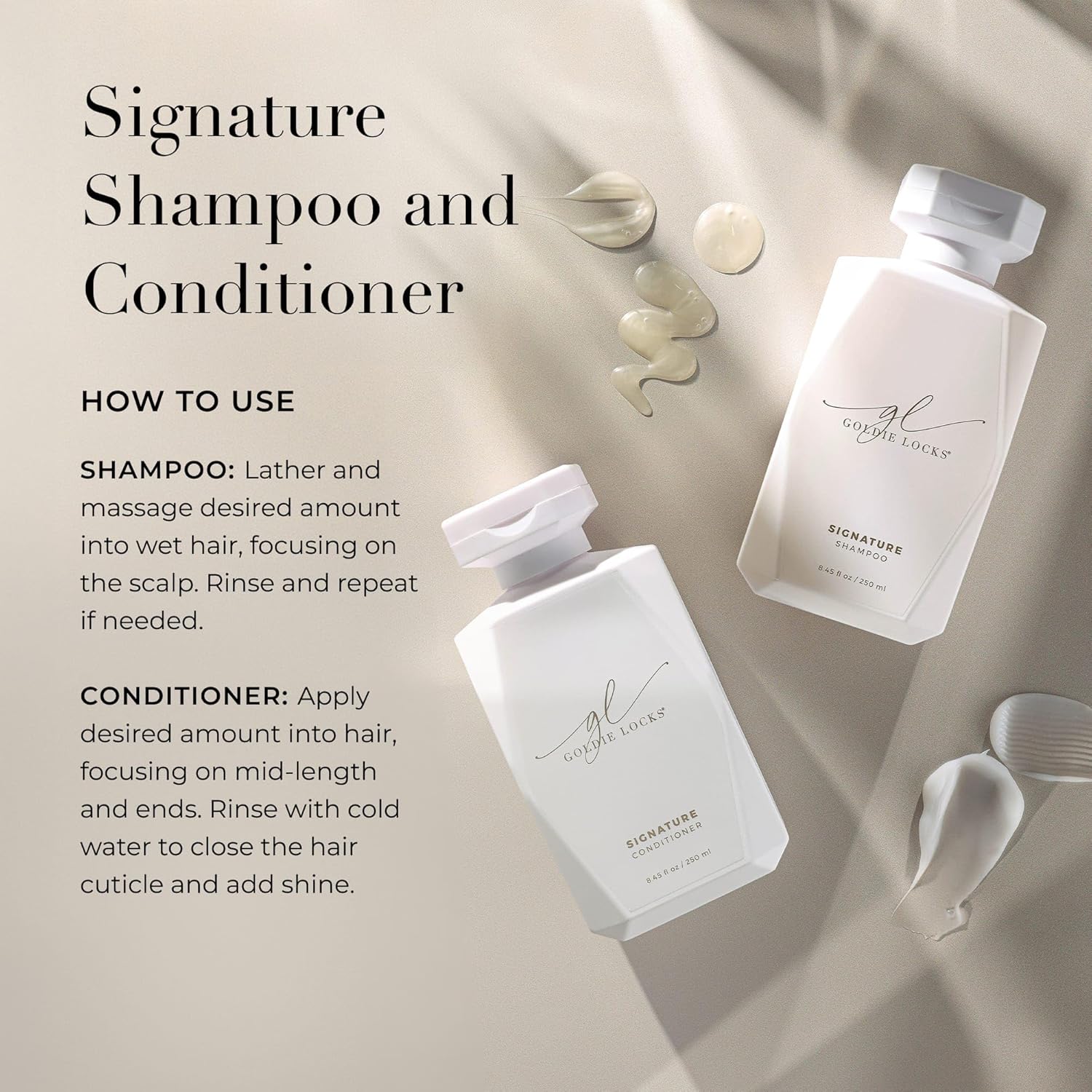 Goldie Locks Shampoo and Conditioner Travel Set - TSA-Approved Hydrating Hair Care Duo with Biotin, Marula Oil & Rose Water – Protein, Sulfate & Paraben-Free in Limited Edition Gold Bag - 3.4 oz each