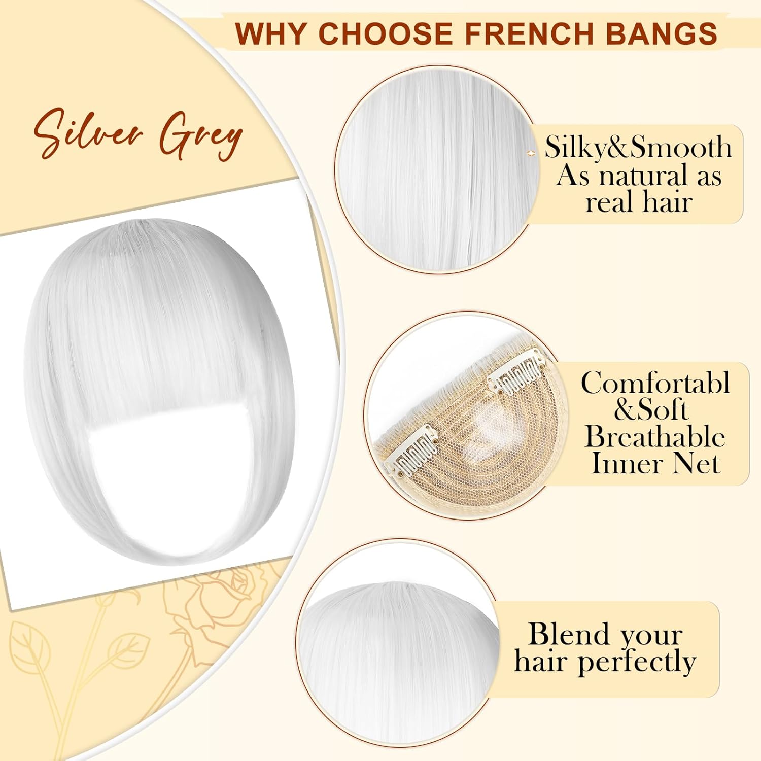 - ๐ Clip-in Bangs Design: Bangs Clip-in Hair Extensions.Clip-in design makes it easier to wear,change a new hairstyle in seconds,making you look more attractive.Two Clips are invisible and undetectable even on your thin front hairline.