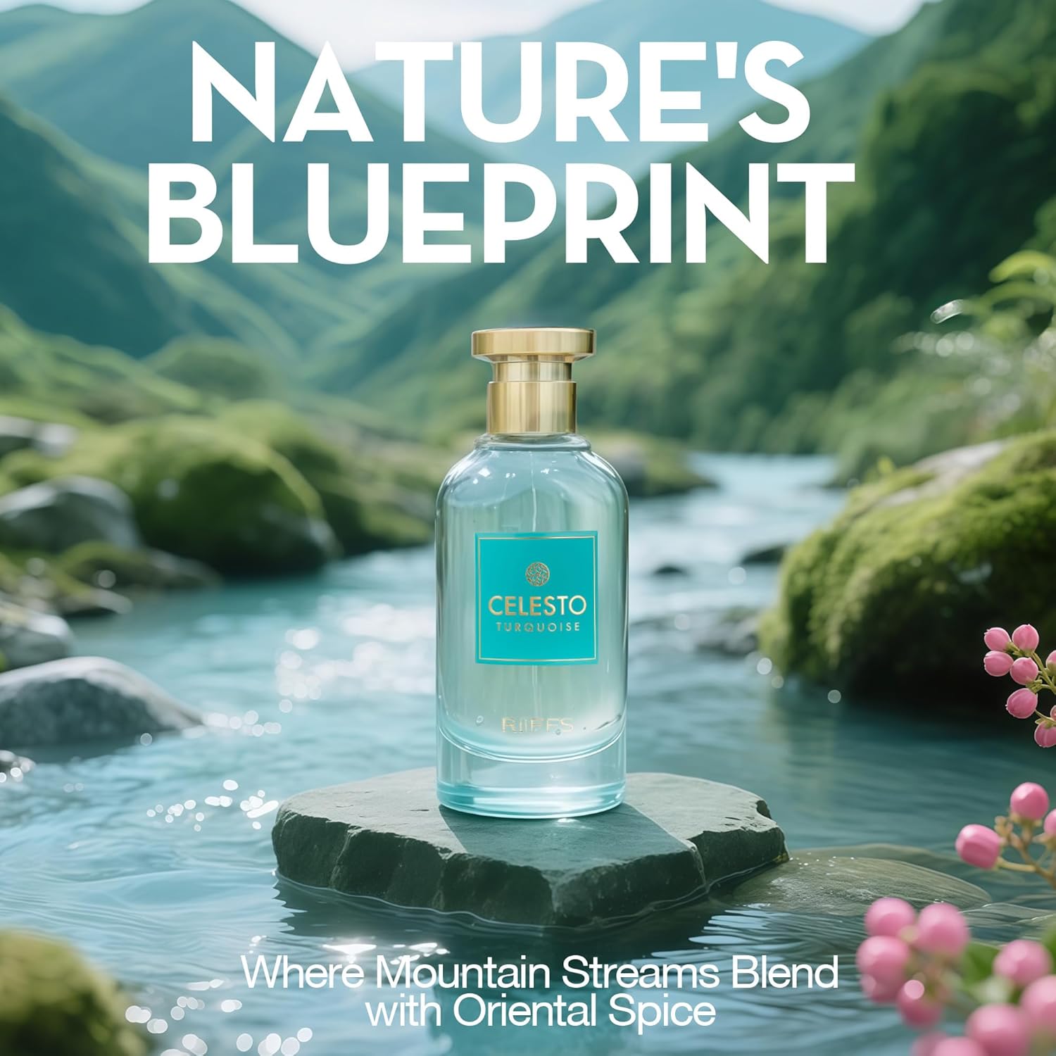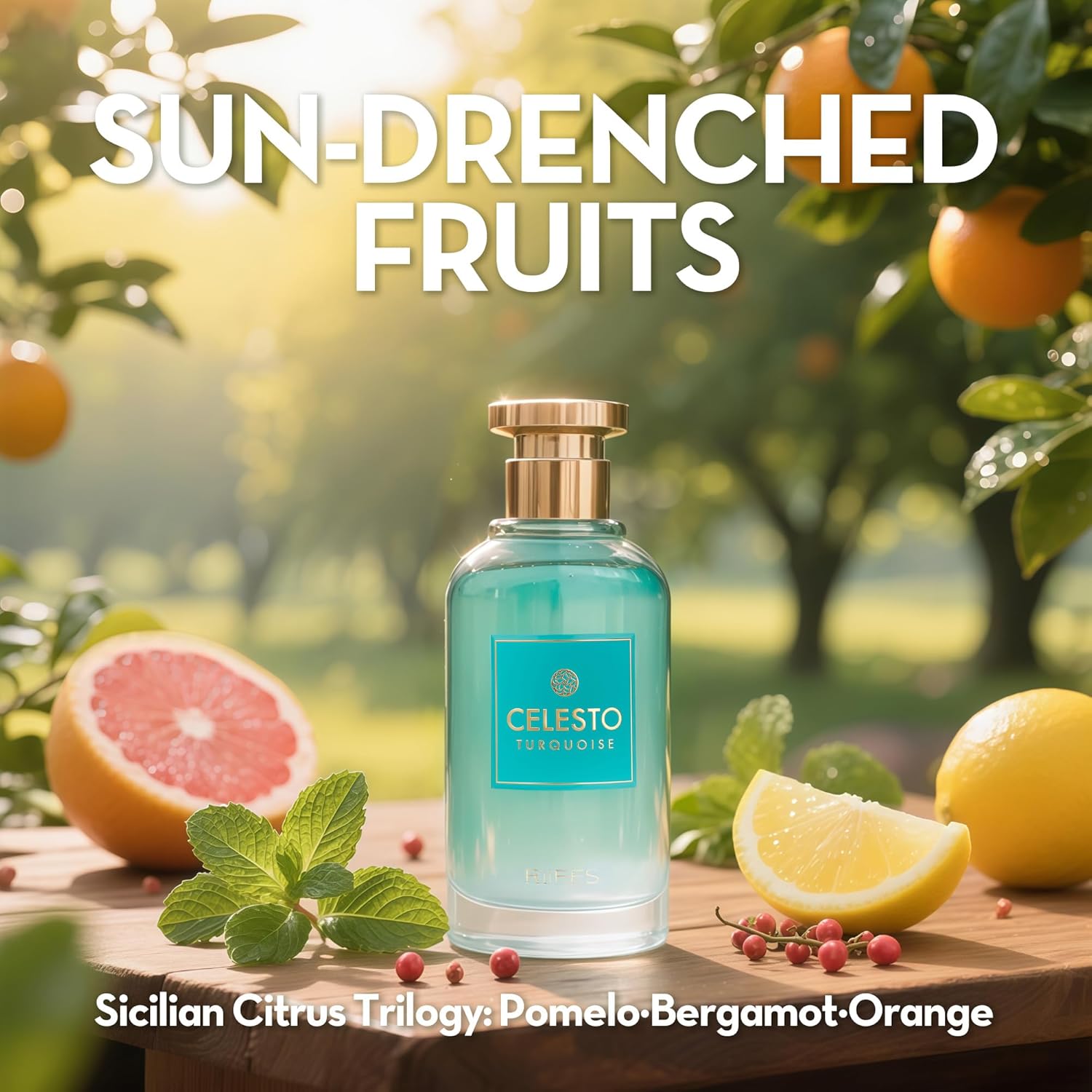 Celesto Turquoise Cologne for Men | Warm Spicy Gourmand Eau de Parfum | 100ml Long Lasting Perfume with Citron,Bergamot,Tunisian Neroli,Ambroxan | Rich Seductive Scent